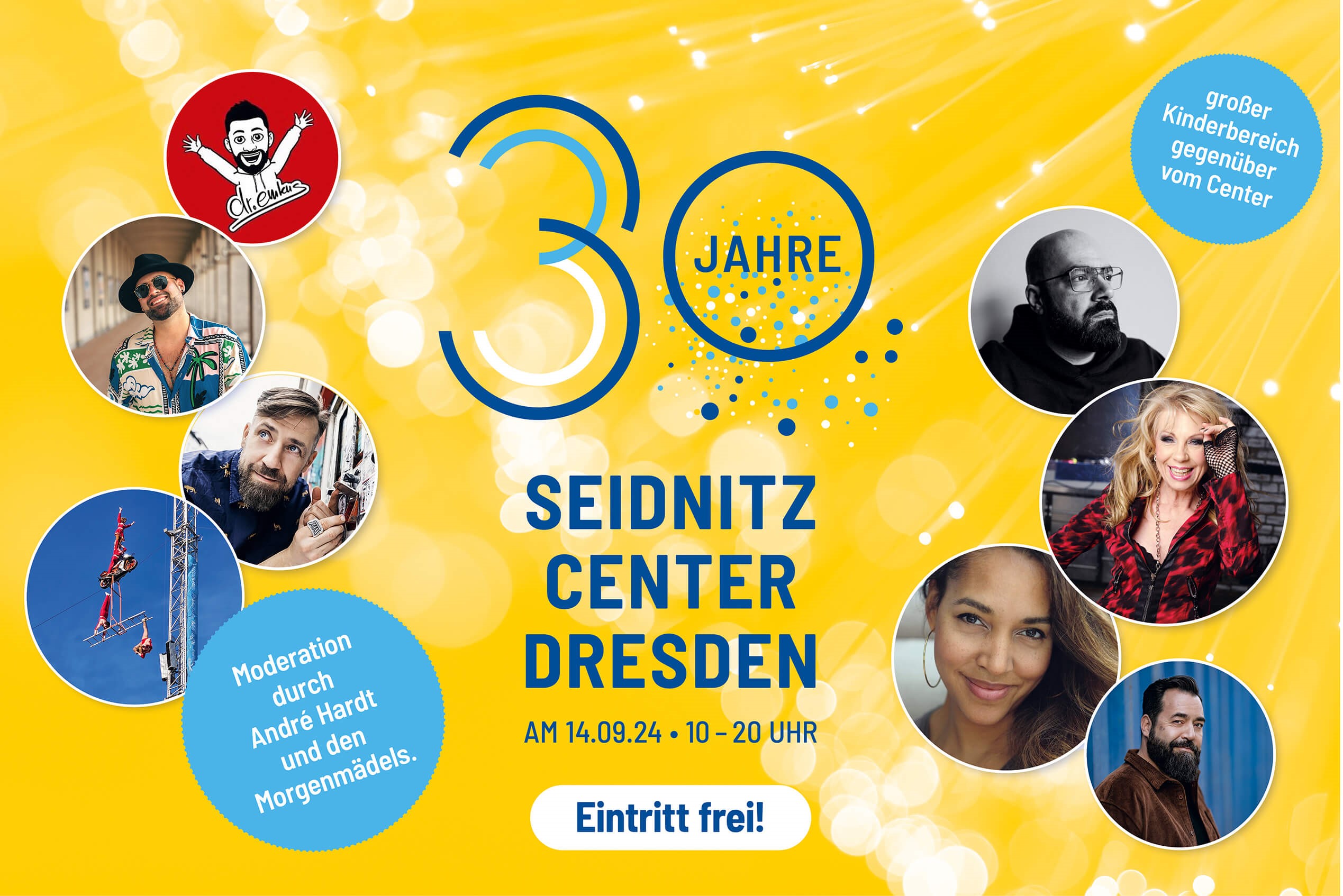 Am Samstag, den 14. September 2024, laden wir euch ein, unser großes Jubiläum zu feiern! Von 10 bis 20 Uhr erwartet euch ein buntes Programm voller Highlights, moderiert von André Hardt und den Morgenmädels.