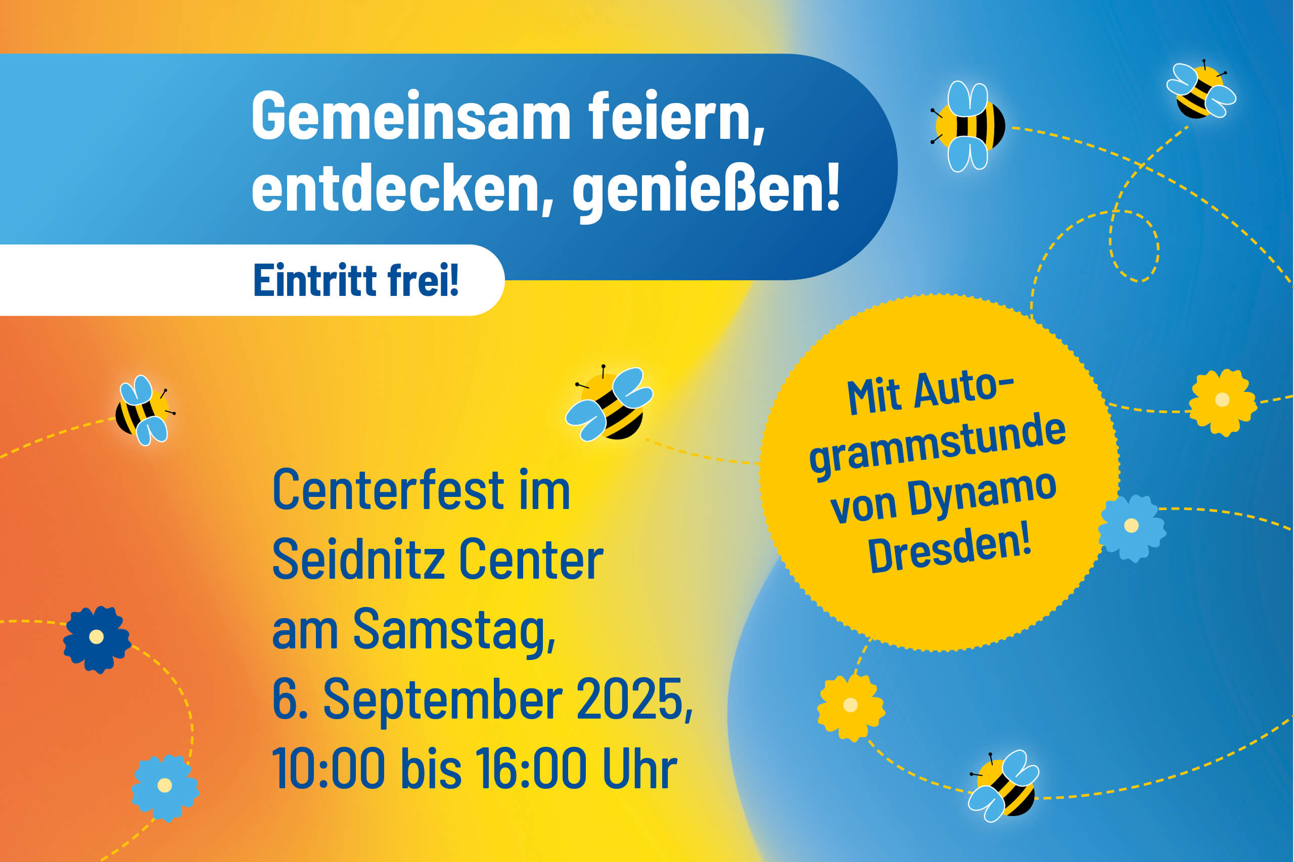 Am Samstag, den 6. September, erwarten euch zu unserem Centerfest von 10:00–16:00 Uhr jede Menge Highlights – und der Eintritt ist frei.